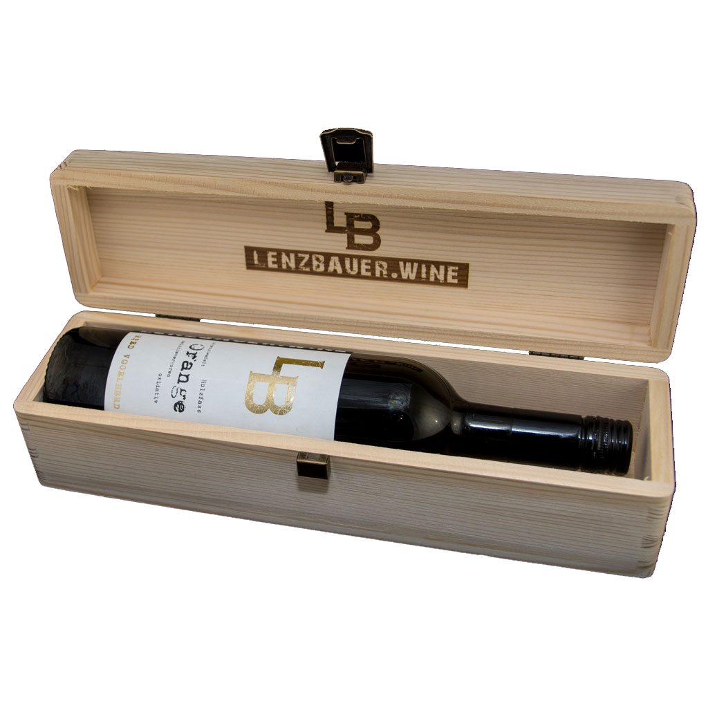 Holzkiste für 1 Flasche Wein (ohne Inhalt) - Ideal als Geschenk. Bestellen Sie zusätzlich den Wein, der enthalten sein soll.