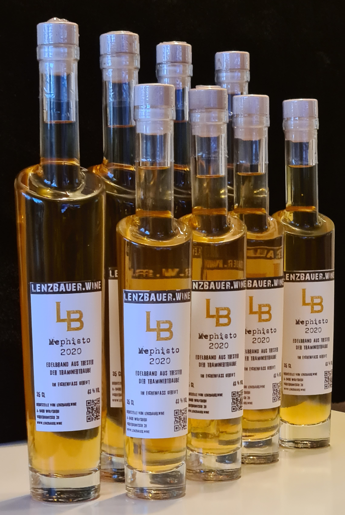 Österreichischer Qualitäts-Edelbrand aus dem Trester der Traminertraube. Gereift im neuen Holzfass - gehaltvoll in der Nase, rund und geschmeidig im Abgang - perfekt als Aperitiv oder nach dem Essen.